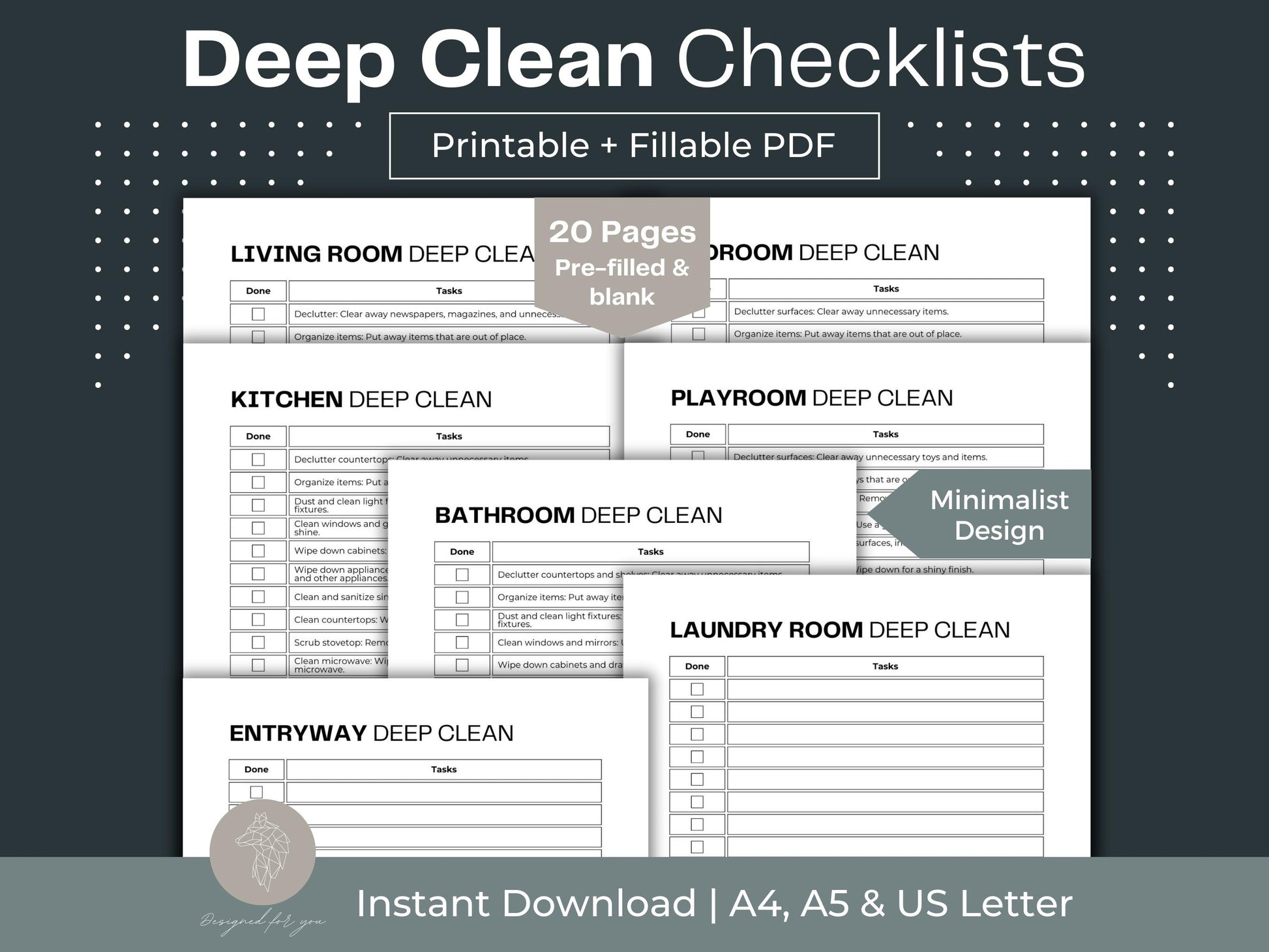 Revitalize your living spaces with our series of 10 Deep Clean Checklists, meticulously crafted to guide you through efficient and thorough cleaning routines. From the Kitchen to the Garage, each checklist provides a step-by-step order for optimal efficiency, ensuring no corner is left untouched. Declutter, organize and refresh your surroundings with these comprehensive checklists, designed to simplify your deep cleaning process and elevate your home to a new level of cleanliness and order.