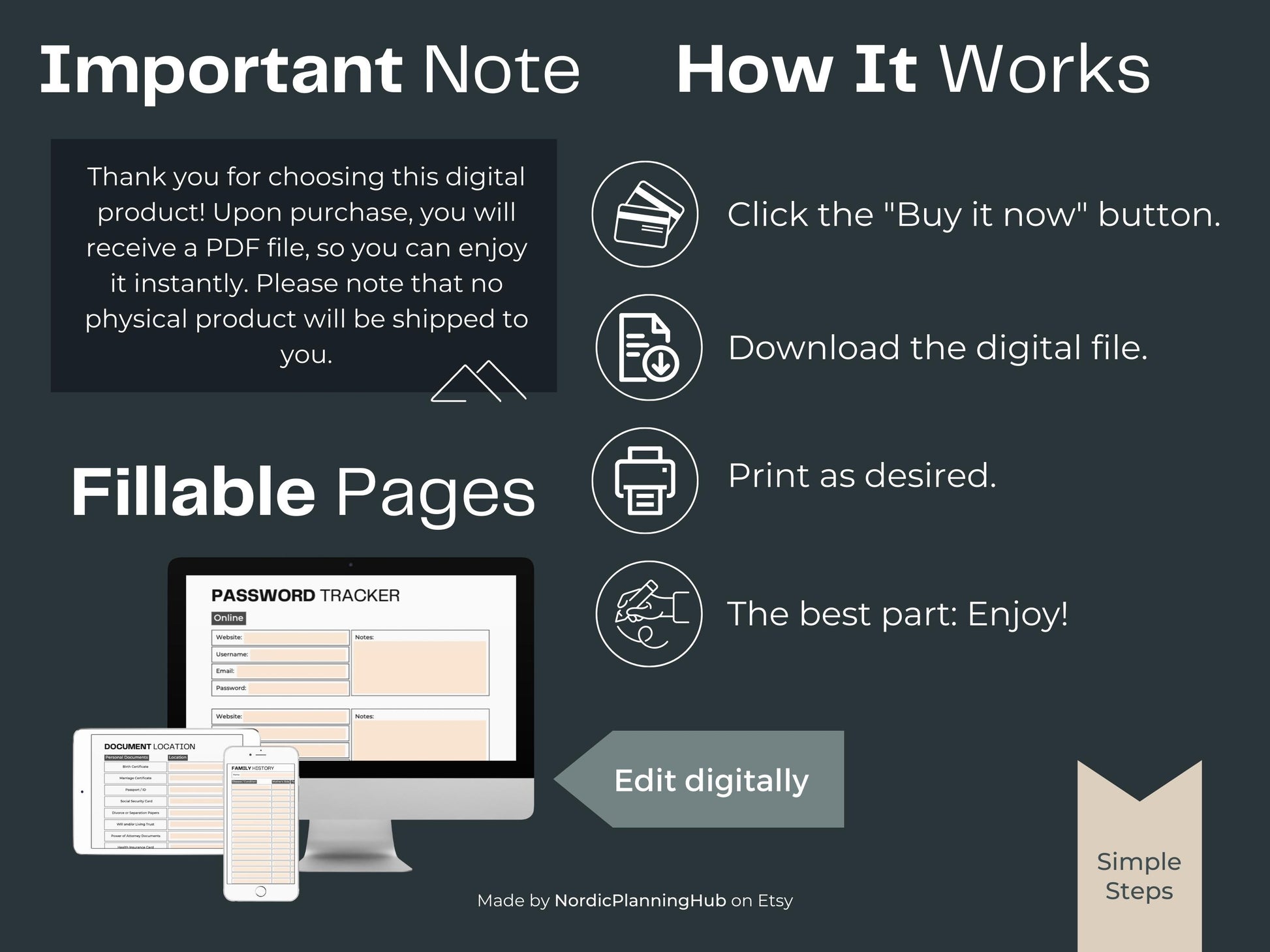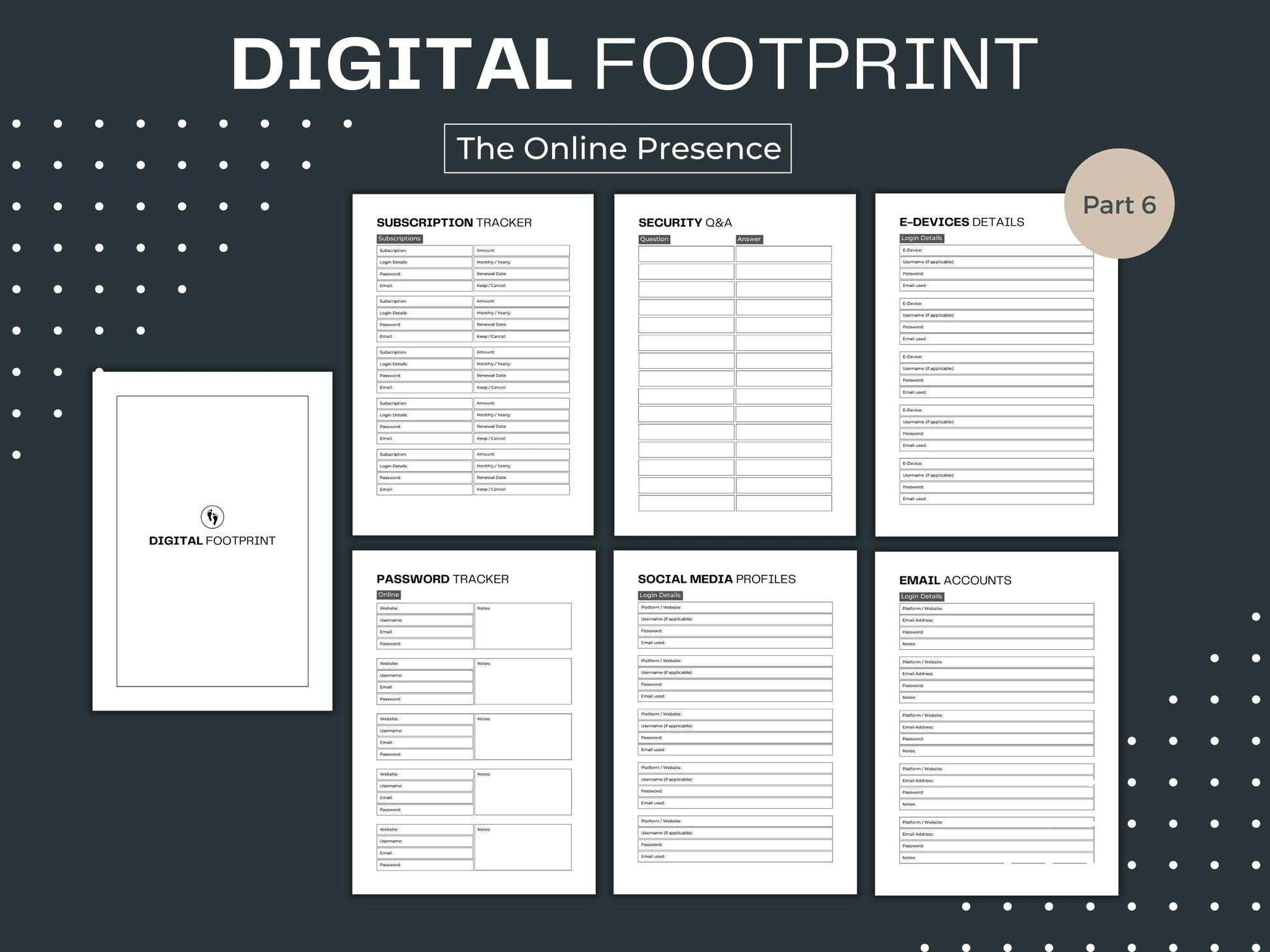 In today's digital age, this planner recognizes the importance of your online presence. You can manage your digital footprint by noting your social media accounts, email addresses, and online subscriptions. This ensures that your online identity and digital assets are accounted for and can be managed according to your wishes.