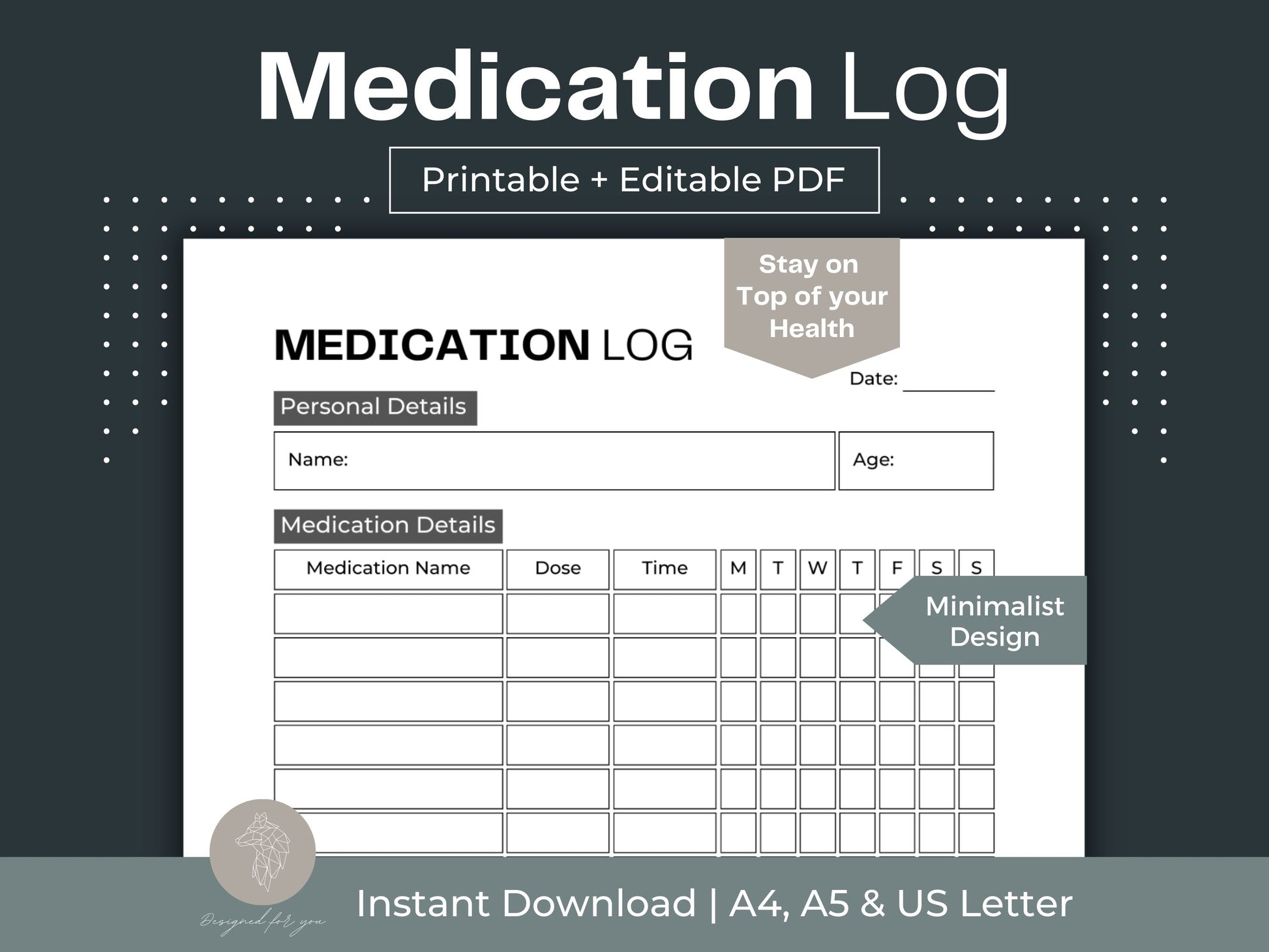Keep your medication regimen on track and effortlessly manage your health with this Medication Log Sheet!