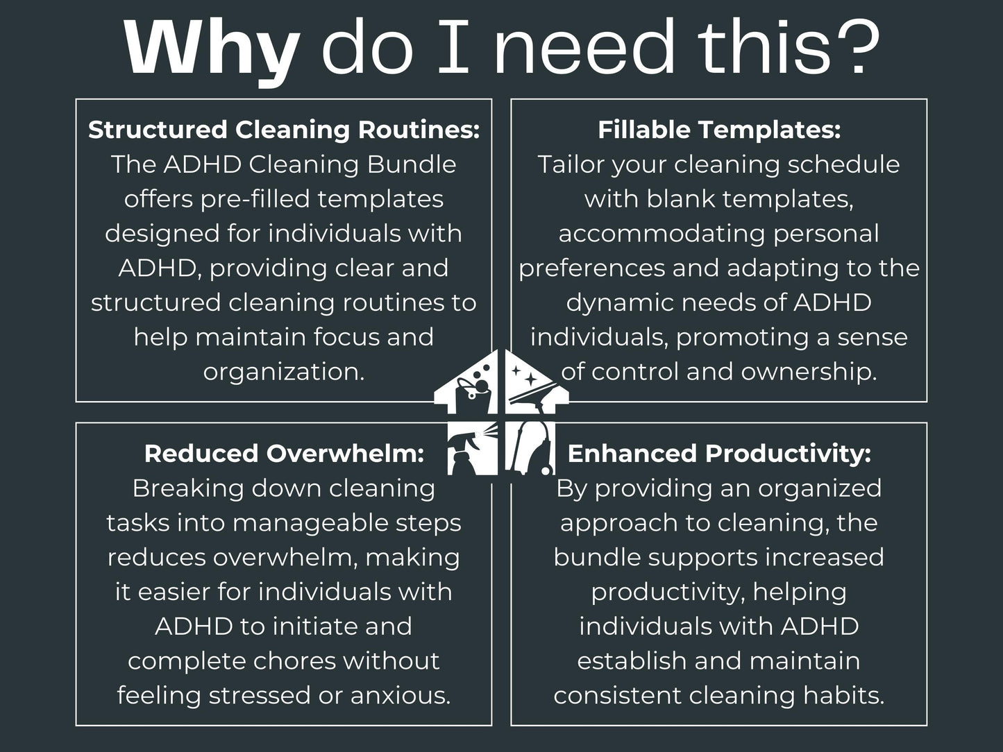 Cleaning Bundle for Individuals with ADHD | Cleaning Checklists